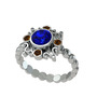 Lab safir ve dumanlı kuvars 8 ayar beyaz altın yüzük