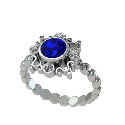 Lab safir ve elmas 18 ayar beyaz altın yüzük (0.24 karat)