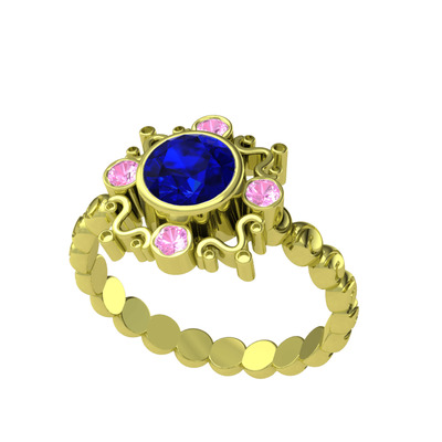 Lab safir ve pembe kuvars 18 ayar altın yüzük