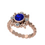 Lab safir ve pırlanta 8 ayar rose altın yüzük (0.24 karat)