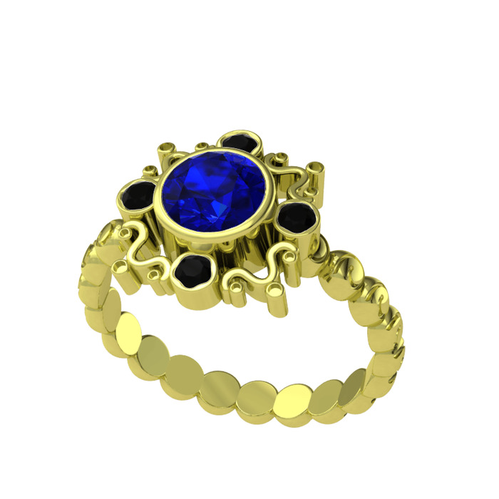 Lab safir ve siyah zirkon 8 ayar altın yüzük