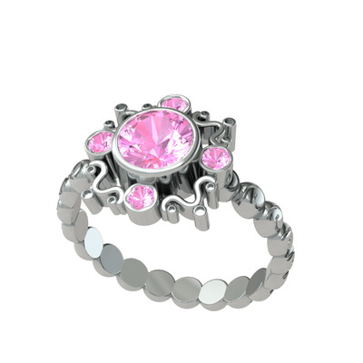 Pembe kuvars 8 ayar beyaz altın yüzük
