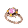 Pembe kuvars ve sitrin 14 ayar rose altın yüzük