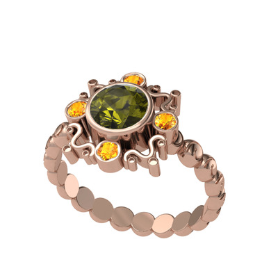 Peridot ve sitrin 14 ayar rose altın yüzük