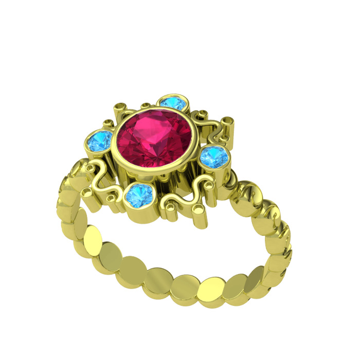 Rodolit garnet ve akuamarin 8 ayar altın yüzük