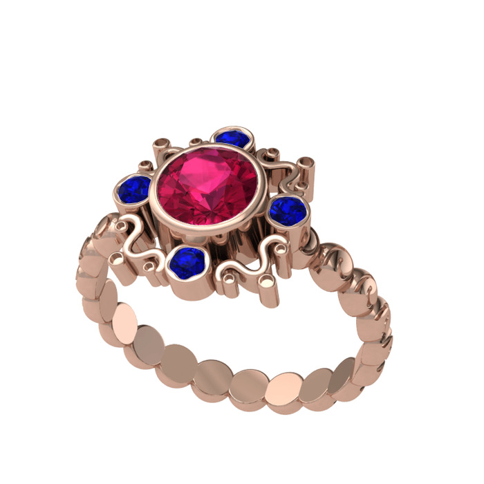 Rodolit garnet ve lab safir 925 ayar rose altın kaplama gümüş yüzük