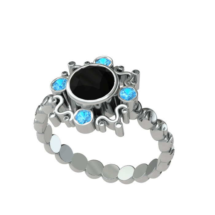 Siyah zirkon ve akuamarin 18 ayar beyaz altın yüzük
