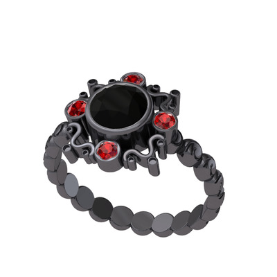 Siyah zirkon ve garnet 925 ayar siyah rodyum kaplama gümüş yüzük