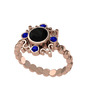 Siyah zirkon ve lab safir 18 ayar rose altın yüzük