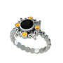 Siyah zirkon ve sitrin 14 ayar beyaz altın yüzük