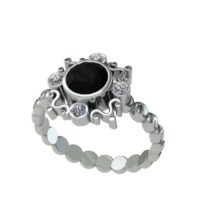 Siyah zirkon ve swarovski 14 ayar beyaz altın yüzük