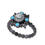 Swarovski ve akuamarin 925 ayar siyah rodyum kaplama gümüş yüzük