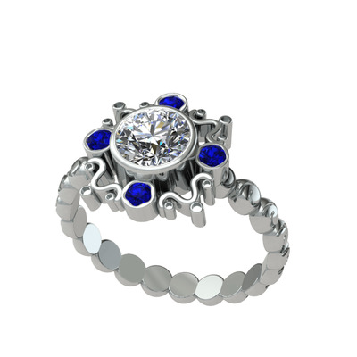 Swarovski ve lab safir 14 ayar beyaz altın yüzük