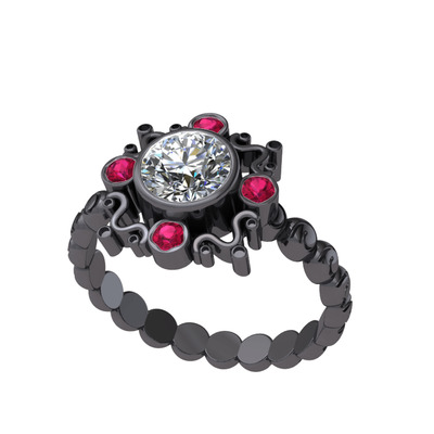 Swarovski ve rodolit garnet 925 ayar siyah rodyum kaplama gümüş yüzük