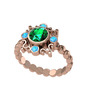 Yeşil kuvars ve akuamarin 925 ayar rose altın kaplama gümüş yüzük