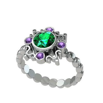 Yeşil kuvars ve ametist 925 ayar gümüş yüzük