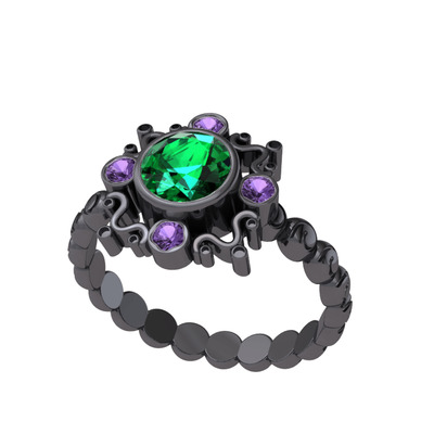 Yeşil kuvars ve ametist 925 ayar siyah rodyum kaplama gümüş yüzük