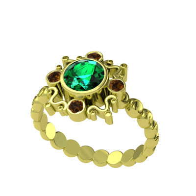 Yeşil kuvars ve dumanlı kuvars 8 ayar altın yüzük