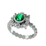 Yeşil kuvars ve elmas 8 ayar beyaz altın yüzük (0.24 karat)