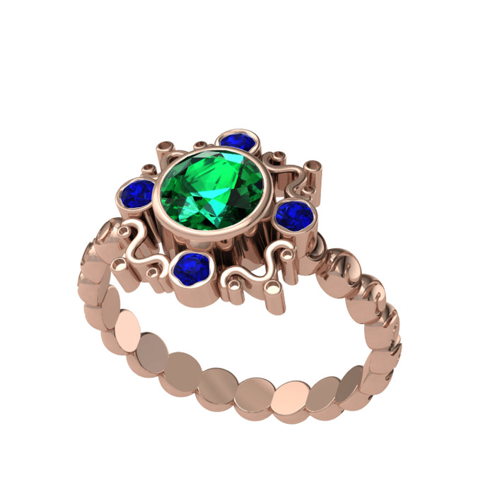 Yeşil kuvars ve lab safir 925 ayar rose altın kaplama gümüş yüzük