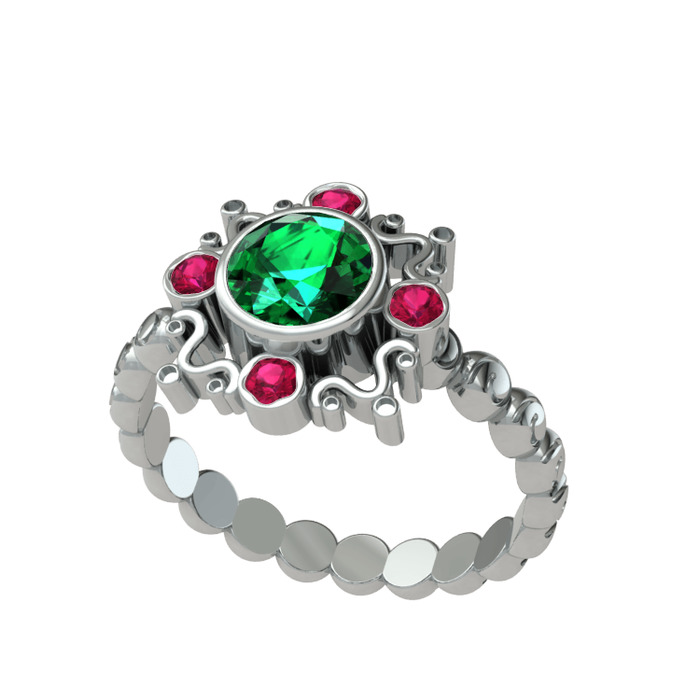 Yeşil kuvars ve rodolit garnet 14 ayar beyaz altın yüzük