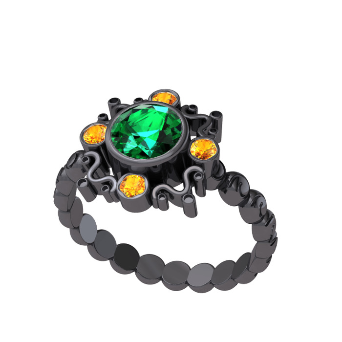 Yeşil kuvars ve sitrin 925 ayar siyah rodyum kaplama gümüş yüzük