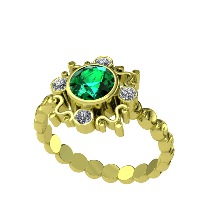 Yeşil kuvars ve swarovski 925 ayar altın kaplama gümüş yüzük