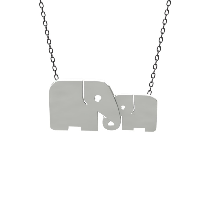 Aile Fil Kolye - 14 ayar beyaz altın kolye (40 cm gümüş rolo zincir)