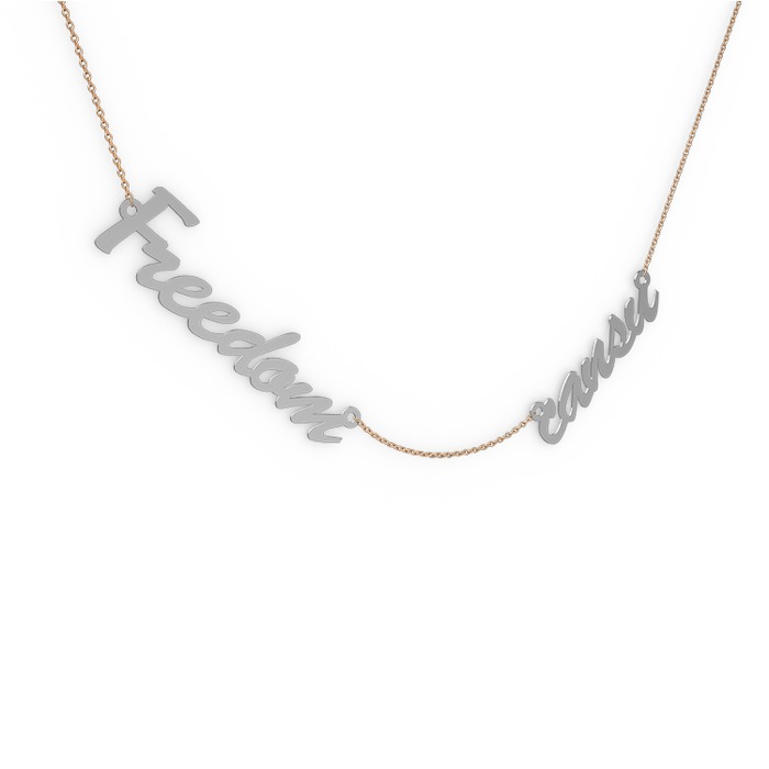 8 ayar beyaz altın kolye (2 karakterli el yazısı, 40 cm rose altın rolo zincir)