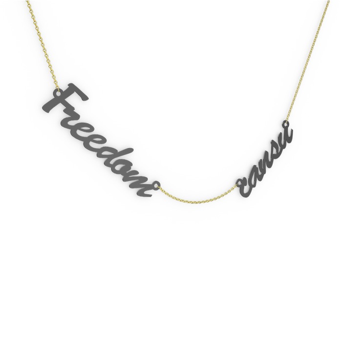 925 ayar siyah rodyum kaplama gümüş kolye (2 karakterli el yazısı, 40 cm altın rolo zincir)