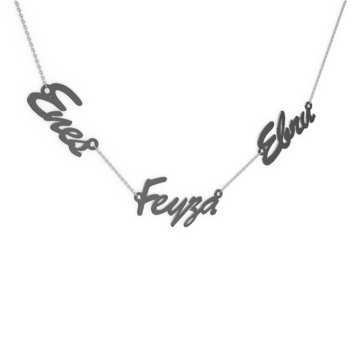 925 ayar siyah rodyum kaplama gümüş kolye (3 karakterli el yazısı, 40 cm beyaz altın rolo zincir)