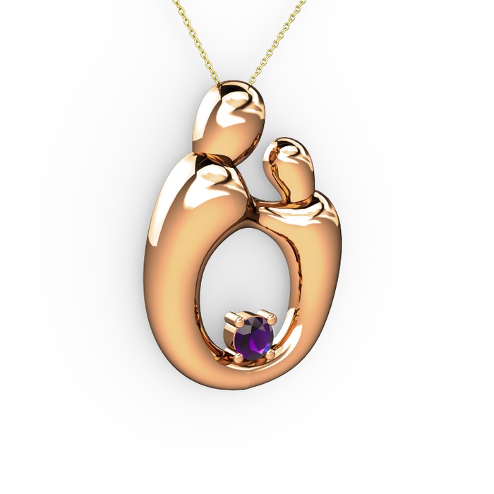 Ametist 14 ayar rose altın kolye (40 cm altın rolo zincir)
