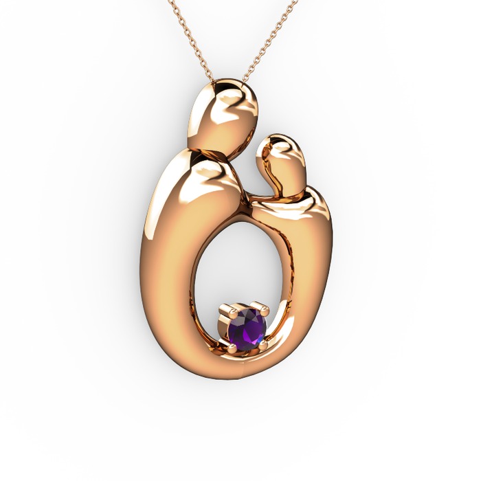 Ametist 925 ayar rose altın kaplama gümüş kolye (40 cm gümüş rolo zincir)
