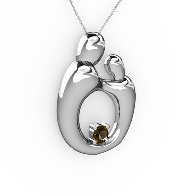 Dumanlı kuvars 14 ayar beyaz altın kolye (40 cm beyaz altın rolo zincir)