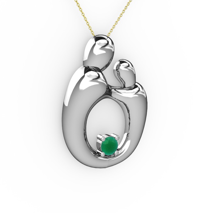 Kök zümrüt 14 ayar beyaz altın kolye (40 cm altın rolo zincir)