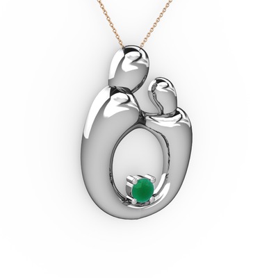 Kök zümrüt 14 ayar beyaz altın kolye (40 cm rose altın rolo zincir)