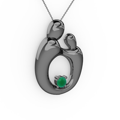 Kök zümrüt 925 ayar siyah rodyum kaplama gümüş kolye (40 cm gümüş rolo zincir)