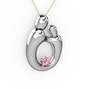 Pembe kuvars 18 ayar beyaz altın kolye (40 cm altın rolo zincir)
