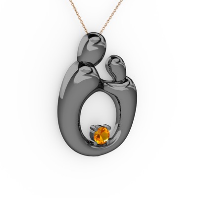 Sitrin 925 ayar siyah rodyum kaplama gümüş kolye (40 cm rose altın rolo zincir)