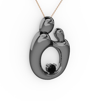 Siyah zirkon 925 ayar siyah rodyum kaplama gümüş kolye (40 cm rose altın rolo zincir)