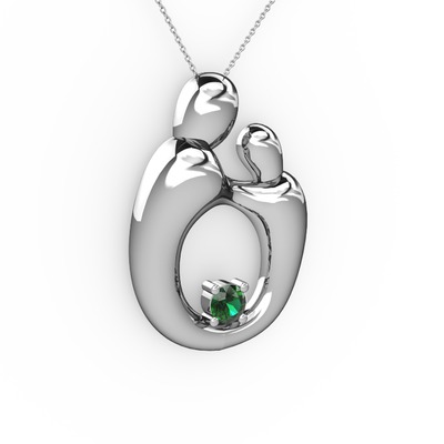 Yeşil kuvars 14 ayar beyaz altın kolye (40 cm gümüş rolo zincir)