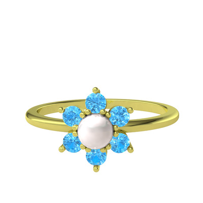 Inci ve akuamarin 925 ayar altın kaplama gümüş yüzük