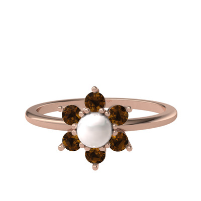 Inci ve dumanlı kuvars 925 ayar rose altın kaplama gümüş yüzük