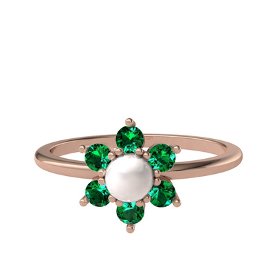 Inci ve yeşil kuvars 925 ayar rose altın kaplama gümüş yüzük