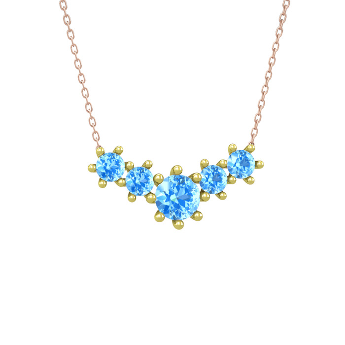 Akuamarin 8 ayar altın kolye (40 cm rose altın rolo zincir)