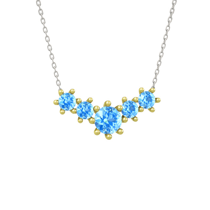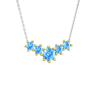 Akuamarin 925 ayar altın kaplama gümüş kolye (40 cm beyaz altın rolo zincir)