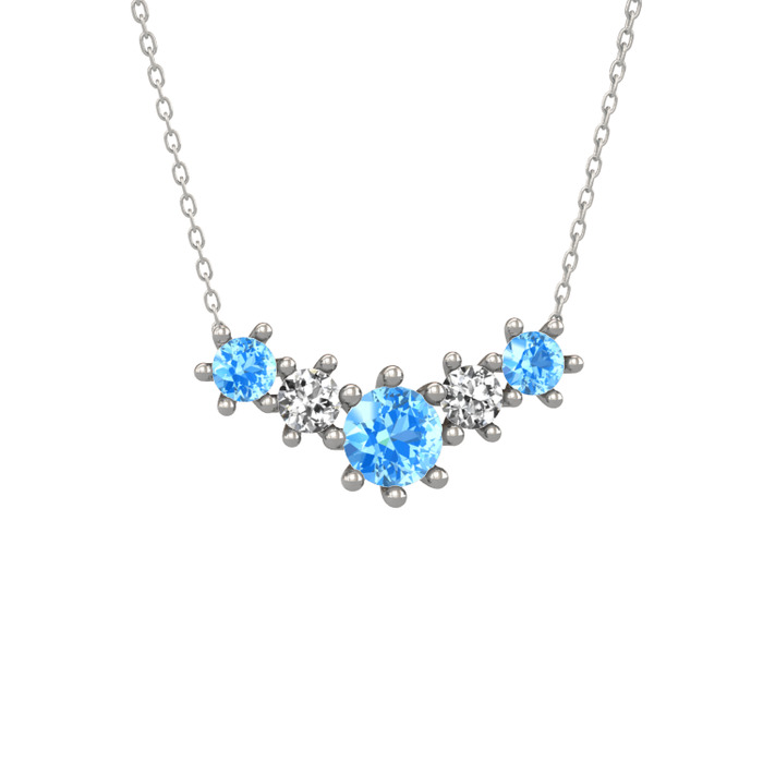 Akuamarin ve beyaz zirkon 925 ayar gümüş kolye (40 cm gümüş rolo zincir)