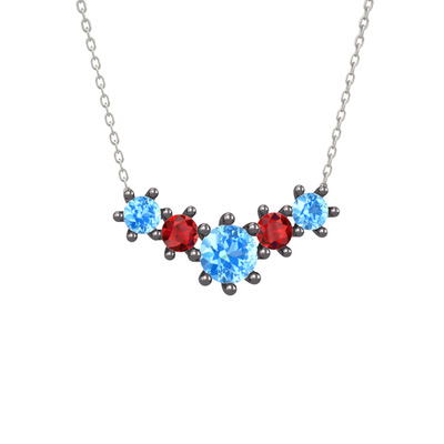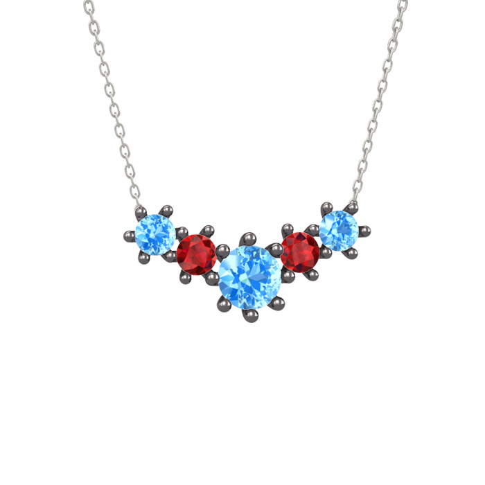Akuamarin ve garnet 925 ayar siyah rodyum kaplama gümüş kolye (40 cm beyaz altın rolo zincir)