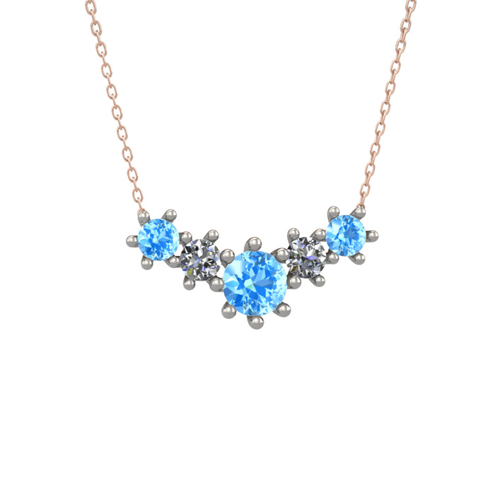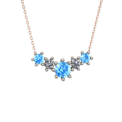 Akuamarin ve pırlanta 925 ayar gümüş kolye (0.32 karat, 40 cm gümüş rolo zincir)