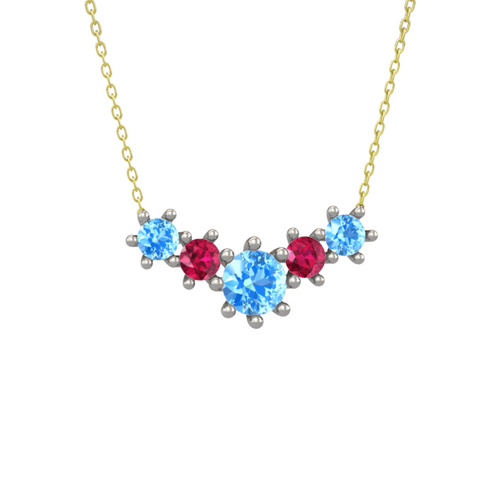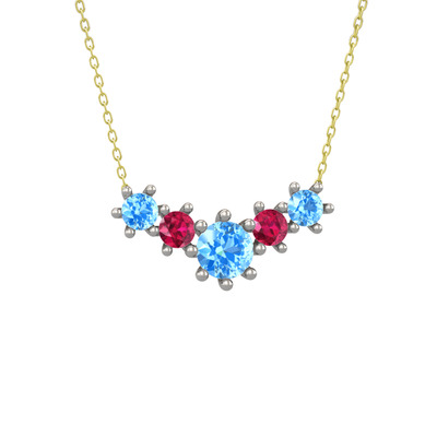 Akuamarin ve rodolit garnet 925 ayar gümüş kolye (40 cm altın rolo zincir)